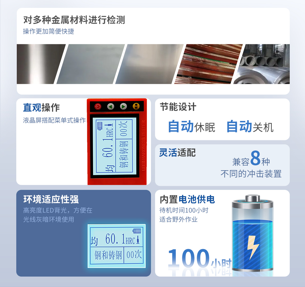 | 测量范围 | (127~651)HB,(59.6~99.6)HRB,(17.9~68.5)HRC,(59.1~85.8)HRA,(83~976)HV,(32.2~99.5)HS,(150-960)HLD,可定制测量值范围 |