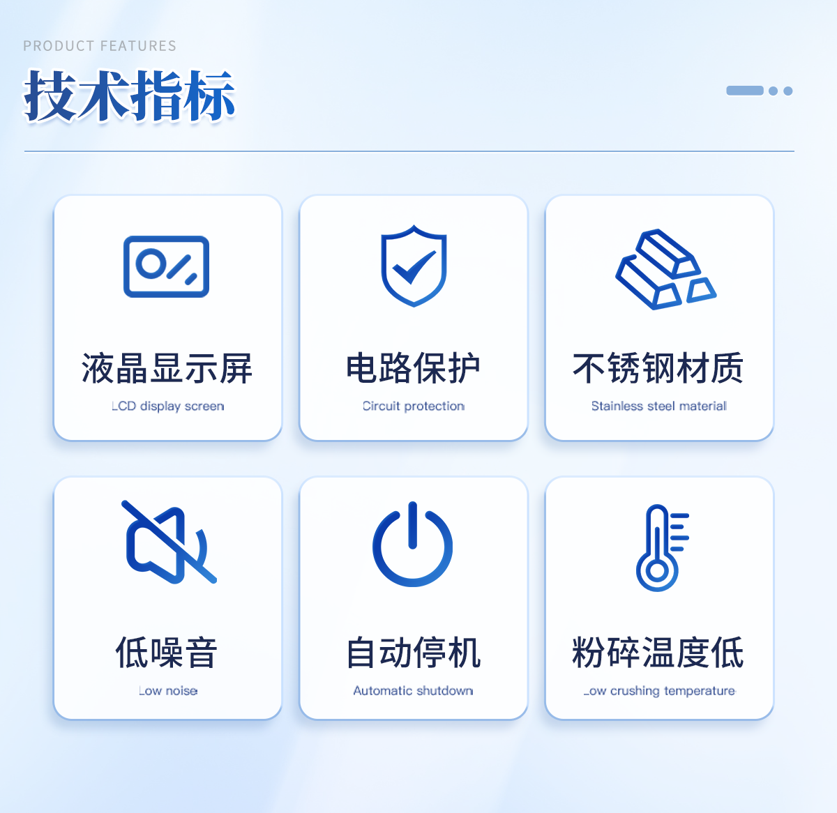 ★21、具有温控功能,可设定温度自动停机,调节转速,进料速度,粉碎时间