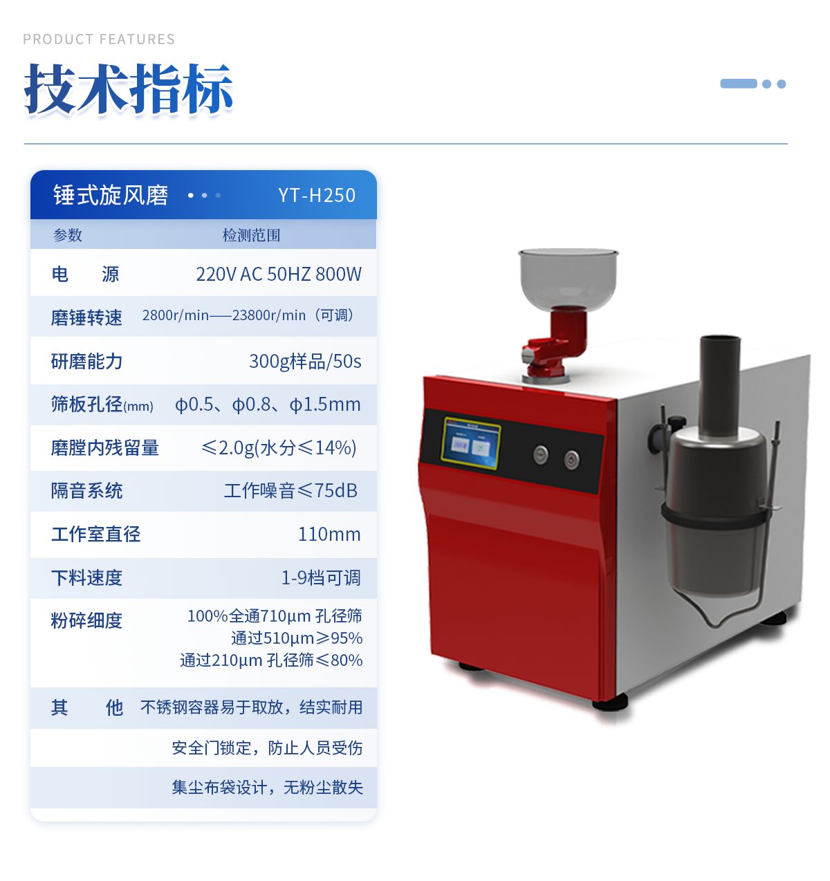 YT-H250锤式旋风磨是本公司根据市场需求独立研究开发的设备,具有粉碎温度低、噪音小等特点。