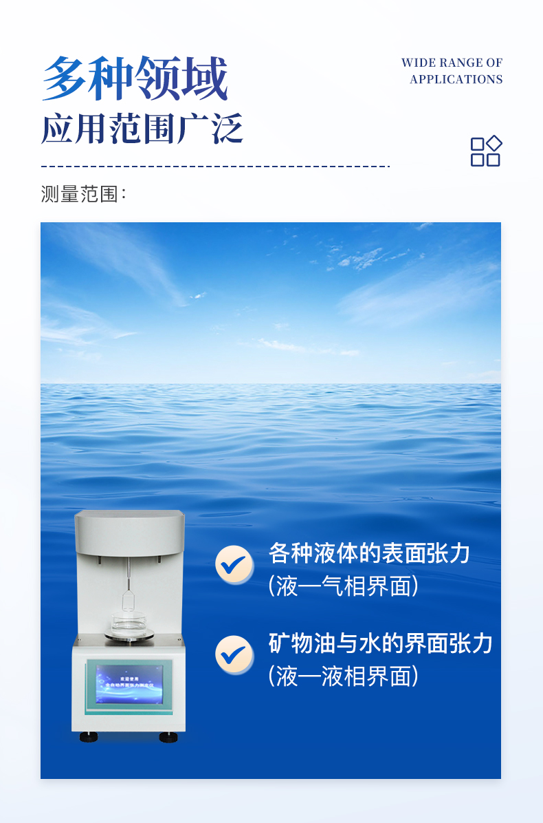 ★ 在正常环境温度下,纯水标定、油样测试整个过程温度控制在25±1℃。★ 温度控制采用PID自整定技术★ 样品分析效率高,可同时放三个样品★ 使用不同测量环仪器自动修正参数★ 自动打印试验结果,动态张力曲线显示★仪器采用等一点标定,简单方便,保证测量精度;★高清晰彩色触摸屏,操作更加方便