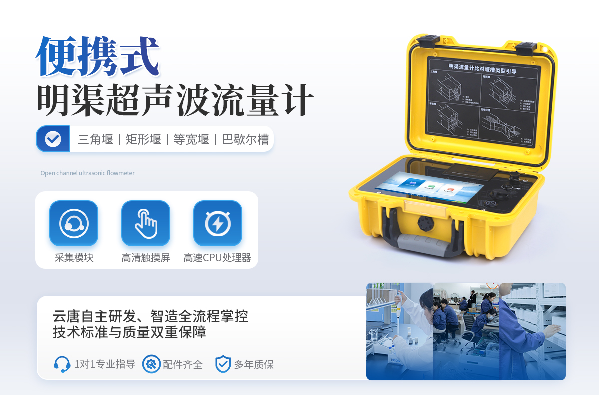 适应于四种基本堰型:三角堰、 矩形堰、 等宽堰、 巴歇尔槽 高精度信号采集模块,24 位采集精度,测量数据真实有效 大屏幕彩色液晶触摸屏,触控引导式操作,操作过程简便 曲线显示流量变化趋势及液位变化趋势 友好的人机交互界面,图文结合,即可对仪器进行操作 仪器带有微型打印机,可现场直接打印测量数据 可与电脑连接,将测量数据输出至电脑,便于用户对数据进行统计分析 可存储 50000 次的测量历史记录 内含大容量锂电池,一次充电可连续测量 72 小时 流量计内置智能化电源管理系统,延长电池使用寿命 开机密码进入,有效保护测量比对数据及结果 手提箱式设计,整机重量轻,方便用户携带 具有USB数据导出和打印机数据打印功能 可选配GRS或北头定位功能