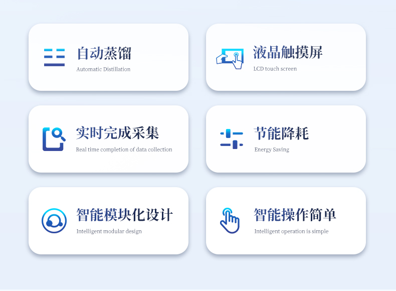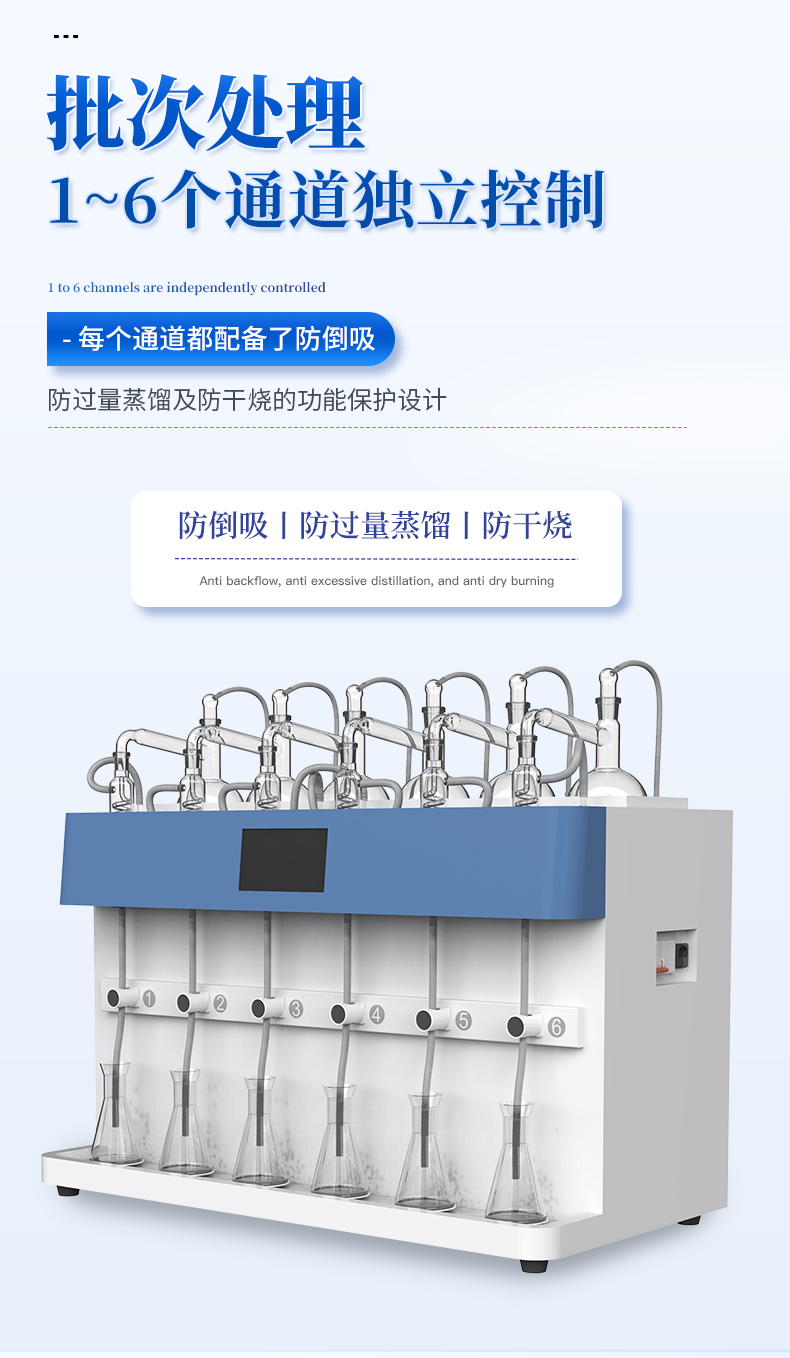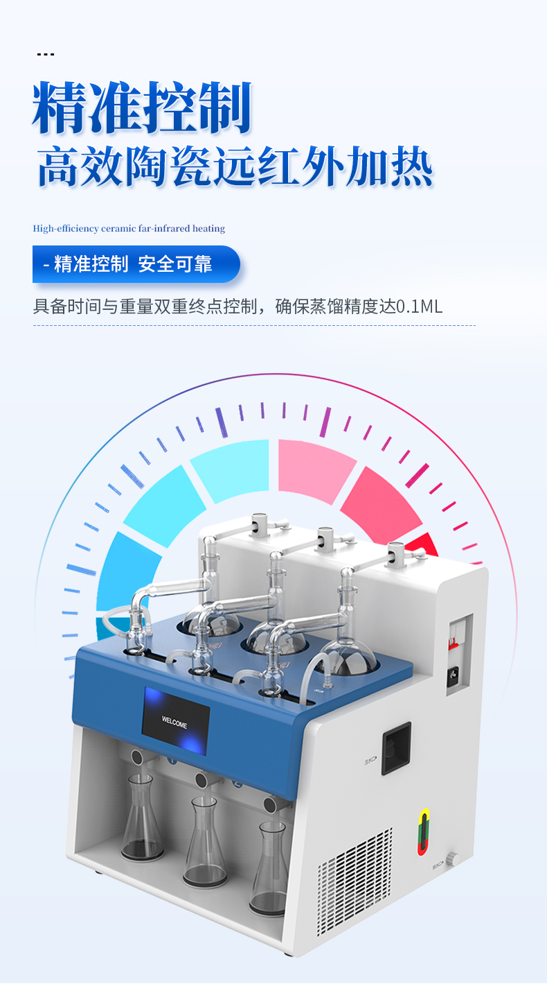 1.自动化程度高:内置冷却水循环机,实现全自动化操作,提高实验效率与准确性。2.多通道独立控制:3个加热单元各自独立,配备防倒吸、防过量蒸馏及防干烧保护。3.智能触控:7寸液晶触摸屏,支持自定义保存*多1000种蒸馏方法,内置18种国标方法。4.精准控制:采用**陶瓷远红外加热,具备时间与重量双重终点控制,确保蒸馏精度达0.1ml。5.安全可靠:集成自动清洗、自动气密检查、反吹等功能,确保设备长期稳定运行。6.操作简便:一键启动,支持远程OTA系统升级,满足不同用户的使用需求。
