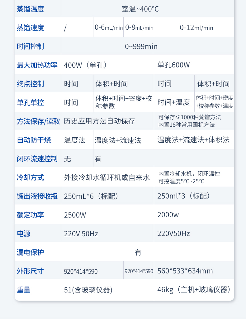 方法保存/读取可保存≤1000种蒸馏方法,内置18种常用国标方法
