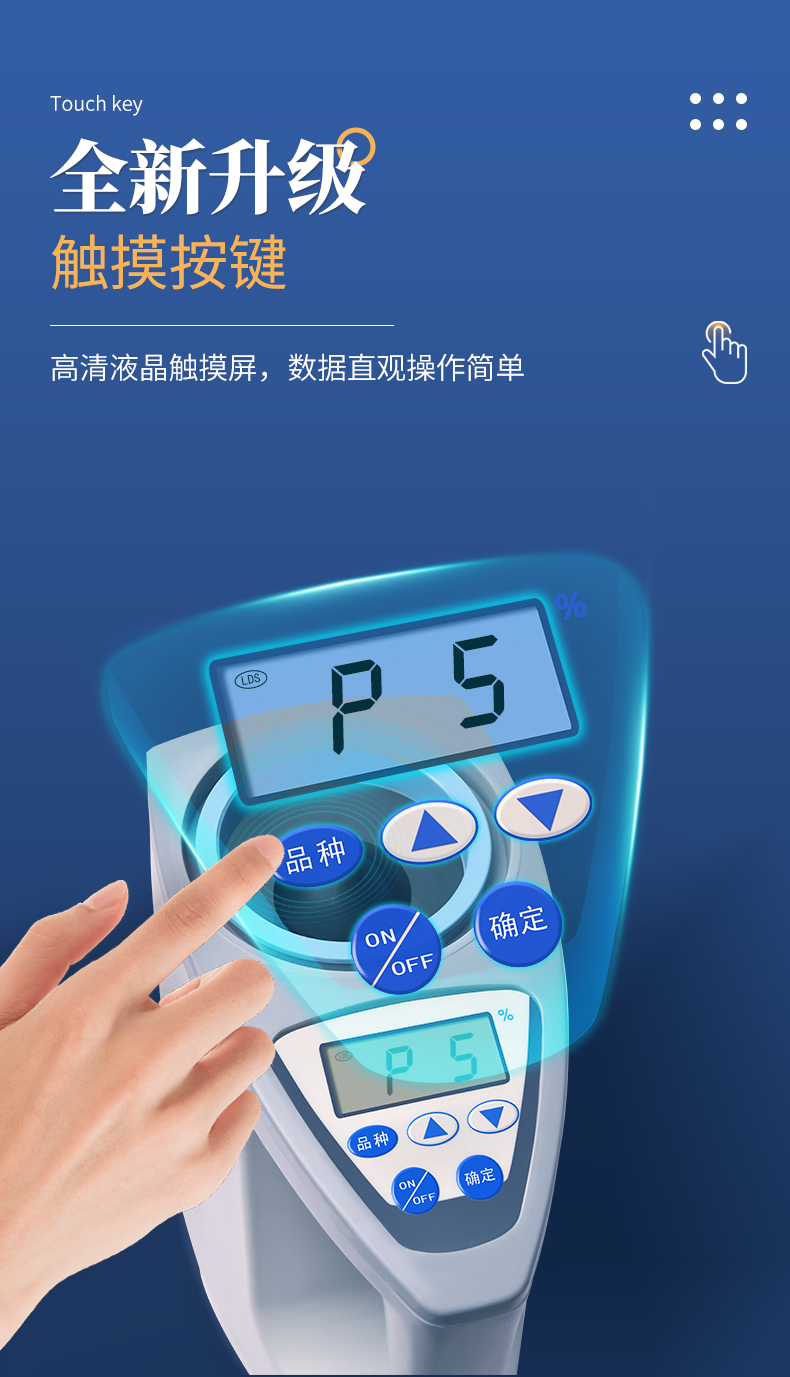 适合国情:用户可对本地特殊品种采用本机独创的四点定标法自行定标,自行修正水分值