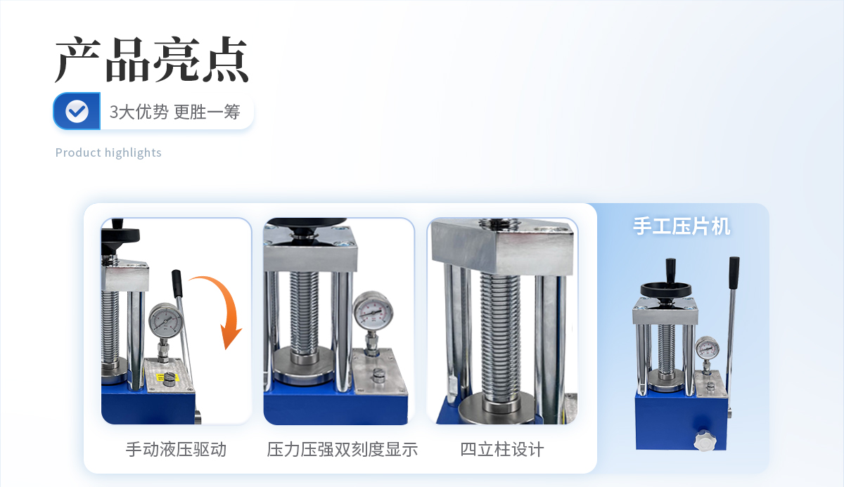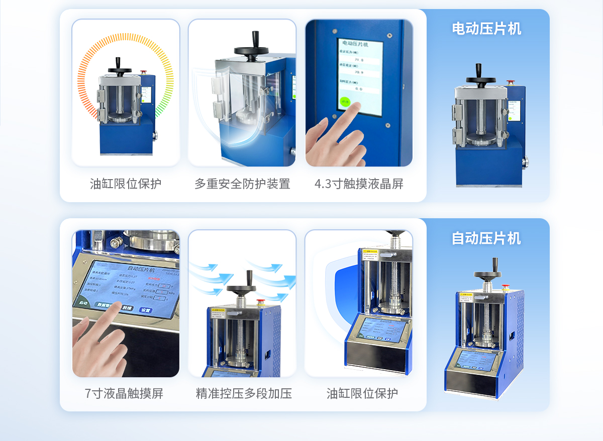 该机的优势是压力大、空间大,可操作性强,采用分体式结构,7寸触摸液晶屏,自动化程序波段控制,操作界面可中英文互换,主要用于大规格模具在大压力下的样品制备;全系标配防弹玻璃防护罩,操作生产安全又放心。