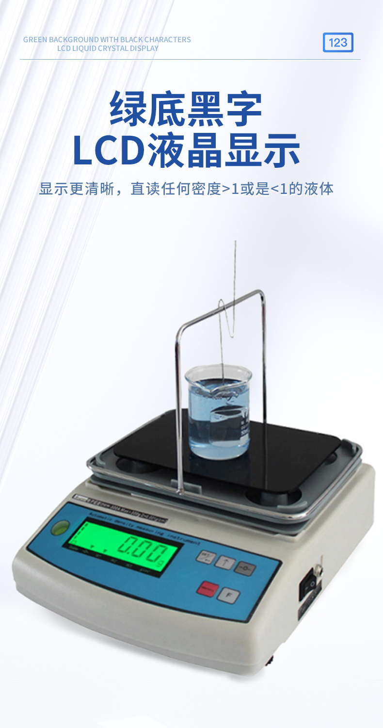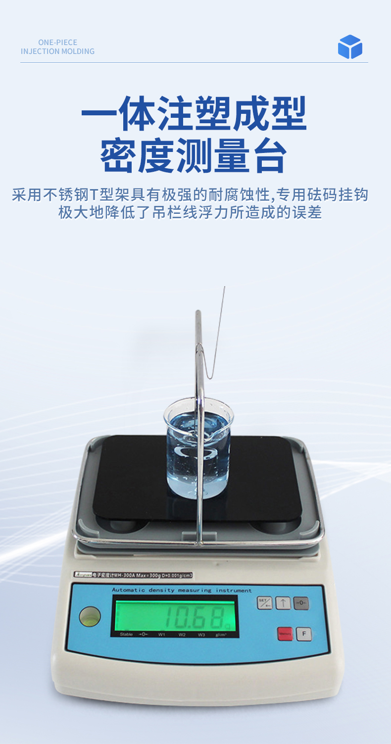 | 1.直读任何密度>1或是<1的液体.> | 2.具有温度补偿设定、溶液补偿设定功能,更人性化的操作、更符合现场作业需求 | 3.密度测量台一体注塑成型,安装方便快速,使用时间更长. | 4.采用不锈钢T型架具有极强的耐腐蚀性,专用砝码挂钩极大地降低了吊栏线浮力所造成的误差 | 5.具有密度上、下限功能,可判定待测物的比重合格与否。设有蜂鸣器装置 | 6.内置蓄电池,选配防风罩,更适合现场测试. | 7. 绿底黑字LCD液晶显示,显示更清晰 |